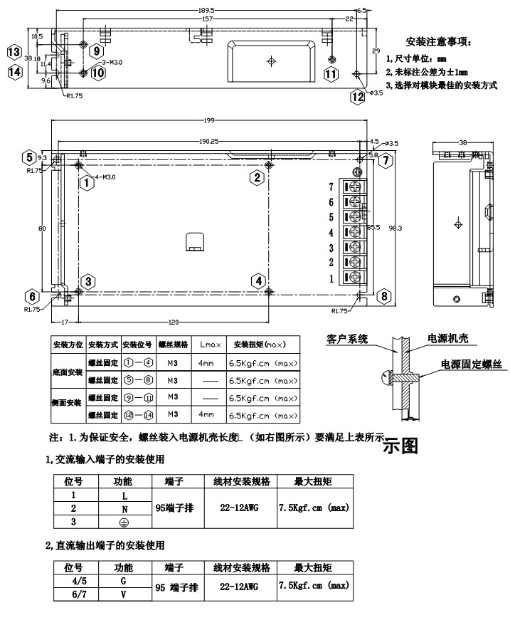 電源尺寸:199mmx98.3mmx38mm