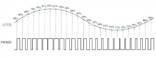 脈沖寬度調制(PWM)是一種對模擬信號進行數字編碼的方法。通過高分辨率計數器的使用,方波的占空比被調制用來對一個具體模擬信號進行編碼。PWM信號仍然是數字的,因為在給定的任何時刻,滿幅值的直流供電要么完全有(ON),要么完全無(OFF)。電壓或電流是以一種通(ON)或斷(OFF)的重復脈沖序列被加到模擬負載上去。通的時候即是直流供電被加到負載上的時候,斷的時候即是供電被斷開的時候。只要帶寬足夠,任何模擬值都可以使用PWM進行編碼。而占空比就是高電平持續時間與整個周期時間的比值,占空比越大,高電平持續的時間越長,模擬電路開通的時間就越長,如圖1所示。