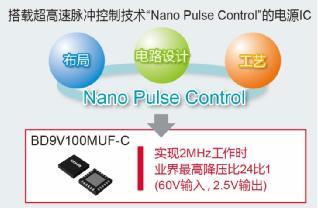 為滿足新市場(chǎng)對(duì)電源IC的需求,ROHM充分利用模擬設(shè)計(jì)技術(shù)和電源系統(tǒng)工藝技術(shù)優(yōu)勢(shì)及垂直統(tǒng)合型生產(chǎn)體制,開發(fā)出超高速脈沖控制技術(shù)“Nano Pulse Control”,實(shí)現(xiàn)了“電源系統(tǒng)的單芯片化”。