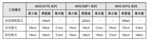 該模塊不僅具有超小體積還具有超低功耗,如下表所小功率模塊發送電流只有20mA,休眠狀態下只有160nA按照2分鐘喚醒一次理論可以工作5-6年時間。