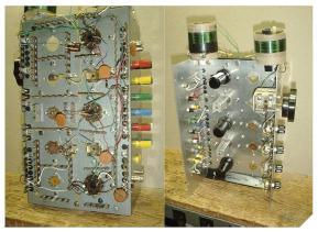 隨著真空管變小和頻率增加,鋁制底盤盒經(jīng)常用于電路的試驗(yàn)板試驗(yàn)。在底盤中穿孔用于安裝真空管插槽,端子板允許電路的點(diǎn)對(duì)點(diǎn)布線,如圖B所示。這種技術(shù)減小了電路尺寸,而鋁制底盤提供了高頻電路經(jīng)常需要的低阻抗接地層。