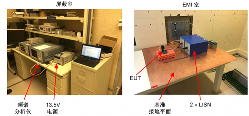 圖 3:使用 V 型 LISN 進行的傳導發(fā)射測量。