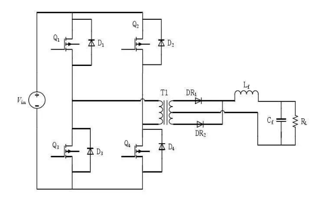 又叫做功率模塊,是整個(gè)DCDC的主體。一個(gè)典型的全橋型 DCDC 變換器主電路拓?fù)淙缦聢D所示。