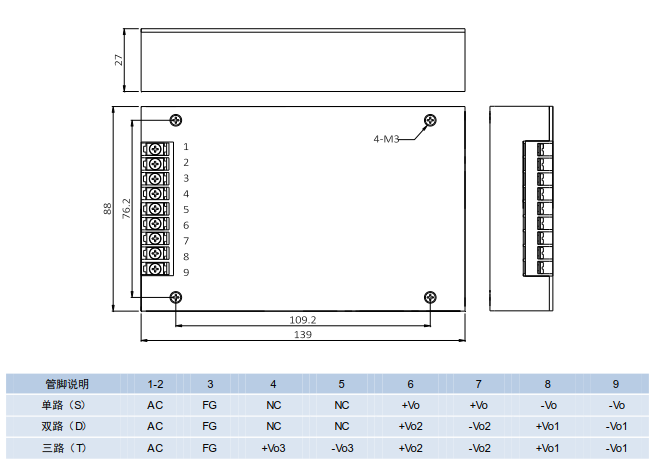 電源尺寸:139mmx88mmx27mm