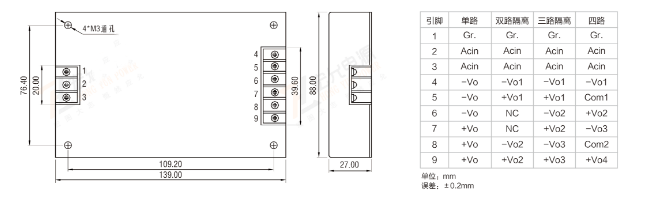 電源尺寸:139mmx88mmx27mm